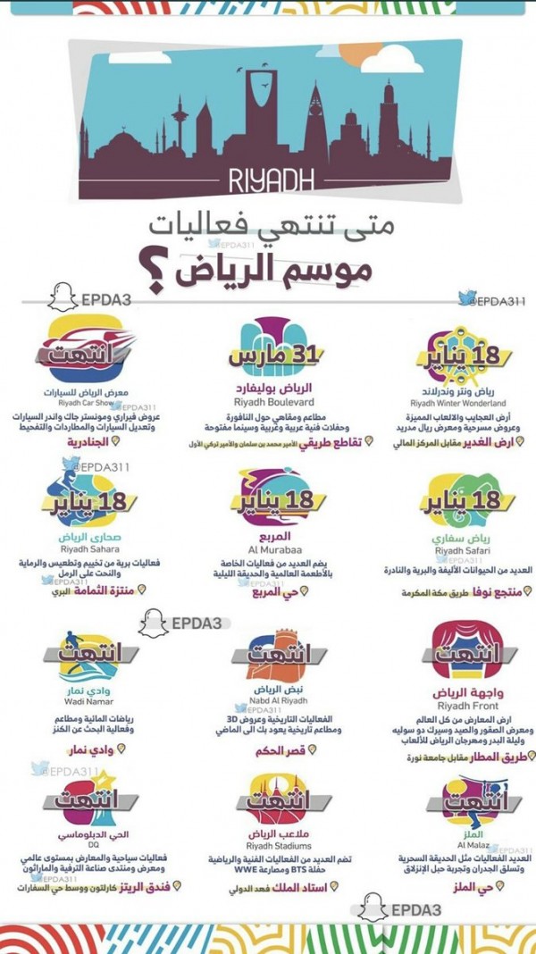 متى ينتهي موسم الرياض. موسم الرياض ينتهي بوقته المحدد. متى ينتهي موسم الرياض. وحمل موسم الطائف 2019 شعار مصيف العرب وتنوعت فعالياته التي. والتمديد يشمل 4 مناطق آخر تحديث.